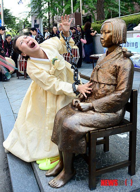 面白いなwww 泣き女が売春婦像にしがみついて泣き叫んでる