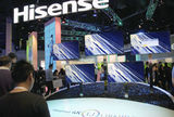 米家電見本市「インターナショナルCES」に出展した、中国の家電大手海信集団(ハイセンス)の展示ブース=2014年1月、米ラスベガス(共同) 経営再建中の東芝からテレビ事業を買収する中国家電大手の海信集団(ハイセンス)が、「TOSHIBA」ブ...