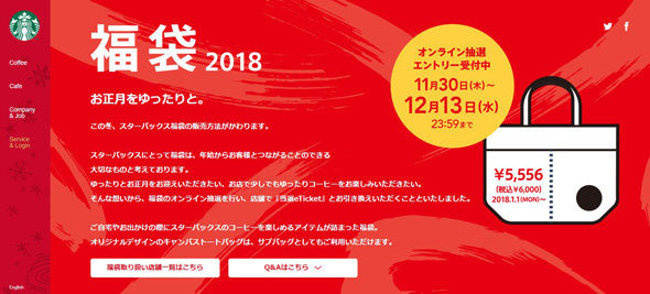 これまでは実店舗で先着順で販売していた。2018年1月1日発売の福袋は、あらかじめ同社サイトで応募を受け付け、当選者のみが店舗に出向いて購入する。引き換えを希望する店舗は3つまで選べる。価格は6000円(税込)、応募期間は12月13日まで。