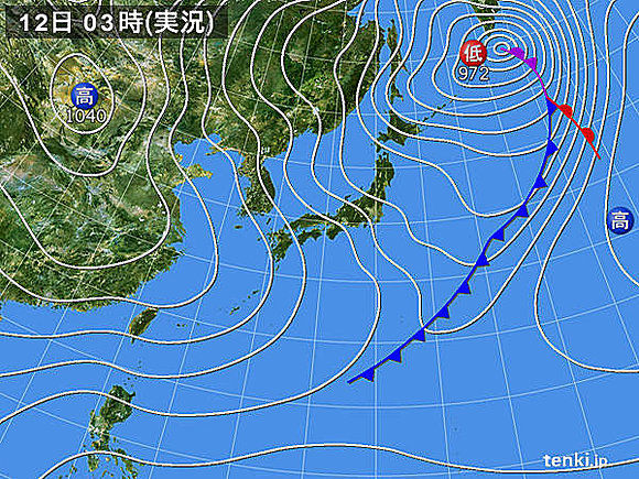 12日、日本付近は気圧の谷や強い寒気の影響を受けるでしょう。先週の大雪の影響が残る北陸を中心に日本海側で大雪となるおそれがあります。交通への影響や屋根から落ちる雪、ナダレにお気をつけ下さい。また、太平洋側でも雪雲の流れ込む所があるでしょう。(2018-02-12 06:21:49)