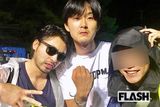本誌は、保坂被告らと芸能人の “親密な関係” を示す写真を複数枚、入手した。いずれも、フジロックフェスティバルで撮影されたものだ。冒頭の写真は、2017年7月に撮影されたもの。学被告とともに、山田孝之や松田龍平が写っている。また2016年7月にはおどけてポーズを決める石野卓球やピエール瀧と、被告らが写真に収まっている。その後、瀧が2019年に麻薬取締法違反で逮捕され、有罪判決を受けたのはご存じのとおりだ。さらに、2018年7月には浅野忠信とも集合写真を撮影している。 「山田孝之さんは、毎年のようにフジロックに来ていて、学被告のステージのところにくると、いつも親しげに話をしていますよ。保坂兄弟が2017年1月、恵比寿で和食レストランを開店した際には、レセプションパーティにも来てましたね。松田龍平さんや浅野忠信さんは、毎年姿を見るわけではなく、これらの写真は知人に頼まれて撮ったくらいのものでしょう。ただ、保坂兄弟はこのクラスの芸能人とも交友がある “大物” だということはわかると思います。石野卓球さんやピエール瀧さんは、保坂兄弟とかなり親しい間柄で、卓球さんは学被告のステージにも出演していました」(モデル事務所関係者)芸能界汚染の起点…“薬物逮捕” 兄弟と大物芸能人の親密写真を入手!山田孝之、松田龍平、石野卓球、ピエール瀧、浅野忠信も - Smart FLASH/スマフラ[光文社週刊誌]
