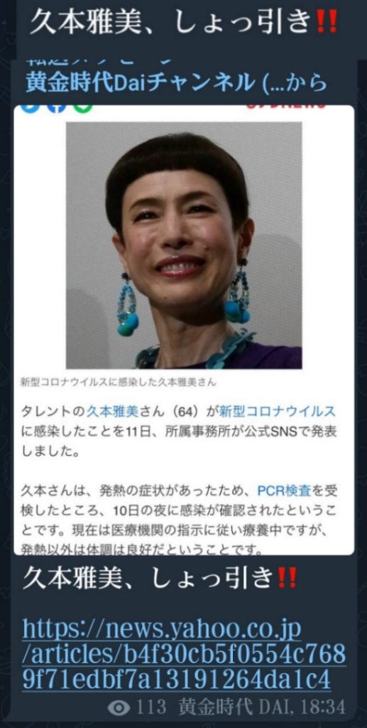 久本雅美【しょっ引き】コロナ陽性!公にトランプ粛清!人類の敵【創価学会】人身売買アドレナクロム!不正選挙!日本での悪事を調べていくと必ずと言っていいほど創価学会に辿り着く!https://t.me/sato39/3744/久本雅美、しょっ引き‼️久本雅美新型コロナウイルス感染10日に陽性判明現在は発熱以外は体調良好(日テレNEWS)-Yahoo!ニュース(記事は下記に)=========久本雅美新型コロナウイルス感染10日に陽性判明現在は発熱以外は体調良好(日テレNEWS)-Yahoo!ニュース久本雅美新型コロナウイルス感染10日に陽性判明現在は発熱以外は体調良好8/11(木) 13:35配信新型コロナウイルスに感染した久本雅美さんタレントの久本雅美さん(64)が新型コロナウイルスに感染したことを11日、...久本雅美【しょっ引き】コロナ陽性!公にトランプ粛清!人類の敵【創価学会】人身売買アドレナクロム!不正選挙!日本での悪事を調べていくと必ずと言っていいほど創価学会に辿り着く!
