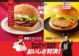 ■ツイッターが決戦の舞台 全国のマクドナルドでは、8月9日から「マック軍」とカテゴライズした5商品と、「マクド軍」と称した5商品を新発売する。 マック軍は、「東京ローストビーフバーガー」(税込440円)と「チキンマックナゲット 東京レモンバジルマヨソース」「マックフィズ 山形ラ・フランス」(それぞれ250円)「マックフロート山形ラ・フランス」(310円)「東京ローストビーフマフィン(朝マック)」(360円)」を品揃え。 対するマクド軍は、「大阪ビーフカツバーガー」(税込390円)と「チキンマックナゲット 大阪お好みマヨソース」「マックフィズ 和歌山温州みかん」(それぞれ250円)」「マックフロート和歌山温州みかん」(310円)「大阪ビーフカツマフィン(朝マック)」(330円)で迎え撃つ。 対決の勝敗は、ツイッターでの「マック軍」「マクド軍」や、両軍の商品名の言及数と、当該投稿のリツイート数で決まる。期間は8月20日まで。勝敗は、翌21日に発表される。 ■マクド」と呼ぶ都道府県はわずか...... なお、日本マクドナルドの調査(2016年実施)によると、「マクド」と呼ぶ都道府県は、大阪、京都、兵庫、奈良、和歌山の5府県だった。また、「マクド」「マック」混合は、徳島、香川、高知、愛媛、三重、滋賀の6県あった。 J‐CAST会社ウォッチの姉妹サイト「Jタウンネット」が実施したアンケート調査(得票数2033票、2015年10月1日〜16年2月29日)では、「マック」が62.7%、「マクド」は34.7%と、全国的には「マック」が優勢だった。 配信2017/8/ 9 10:00 J−CASTニュース