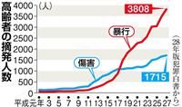 傷害や暴行などでの高齢者 (65歳以上) の摘発人数が、人口増加を上回るペースで急増していることが20日、国の統計から分かった。特に暴行の摘発は10年前から4倍超に激増。些細 (ささい) なトラブルから他人に手を出すケースが多発し、火炎瓶や爆弾などで無差別に他人を傷つける重大事件も起きている。
