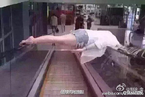 --- 中国でエスカレーター事故 床抜け落ち、息子守るも母落下 ---