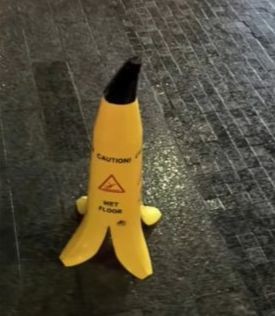 海外のすべりやすいから注意のコーン