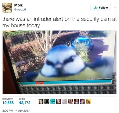 家にあるセキリティカメラの警報アラームが鳴ったと思ったら、これ。