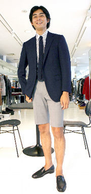 田中利栄さん(31)はセレクトショップ「ユナイテッドアローズ」メンズ商品部に勤める。 ショートパンツはポロシャツなどと合わせることが多い。