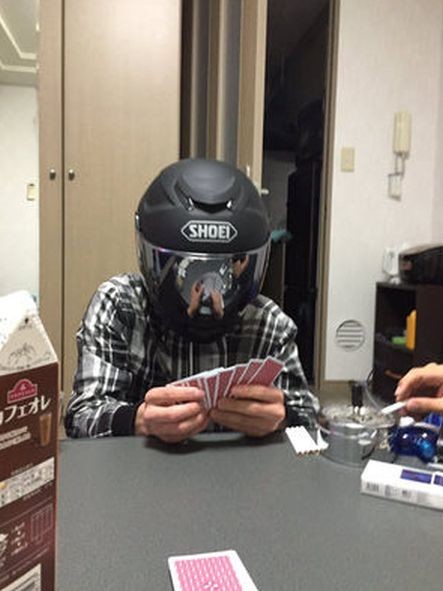 ヘルメットでポーカーフェイス気取ってるつもりが手札丸見え