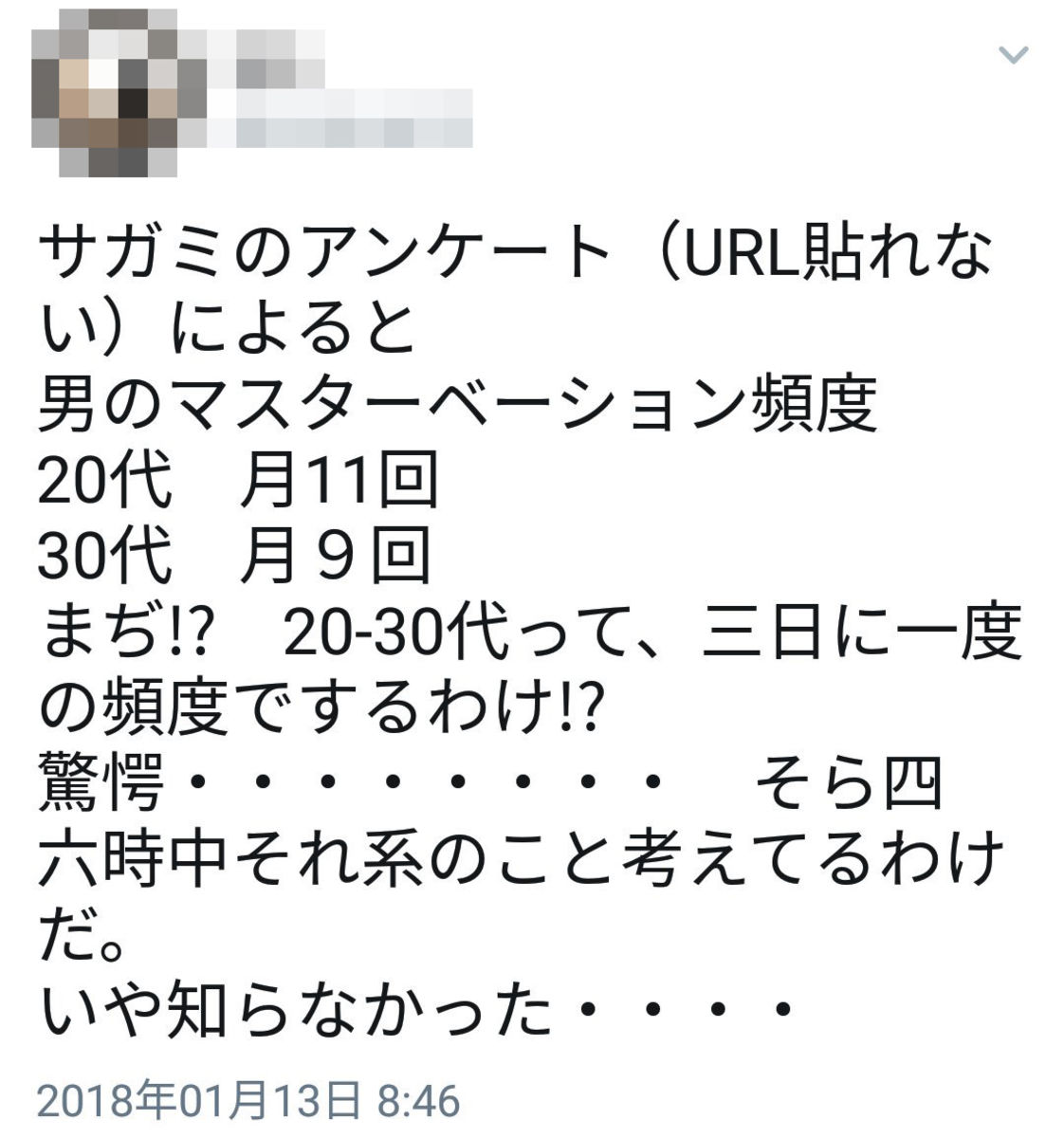 男性の平均値は6.5回、それに対し女性の平均値は0.9回となり、男女に大きな差が出ました。年齢別に見ると20代が6.7回と多く、20代男性の11.1回が最大値を示しました。 都道府県別では秋田県が5.6回でTOP、最も少ないのは福井県の2.8回でした。 続きはこちら
