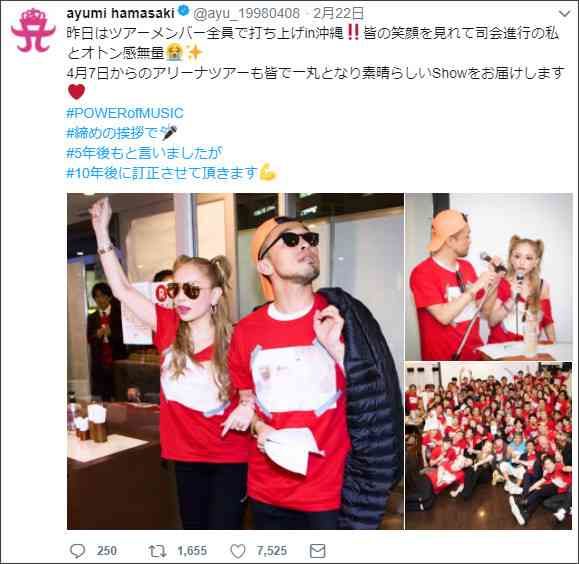 歌手の浜崎あゆみが22日、“10年後も歌い続ける”ことを自身のSNSで示唆した。 この前日、昨年5月からスタートとした全国ツアー『Just the be...…