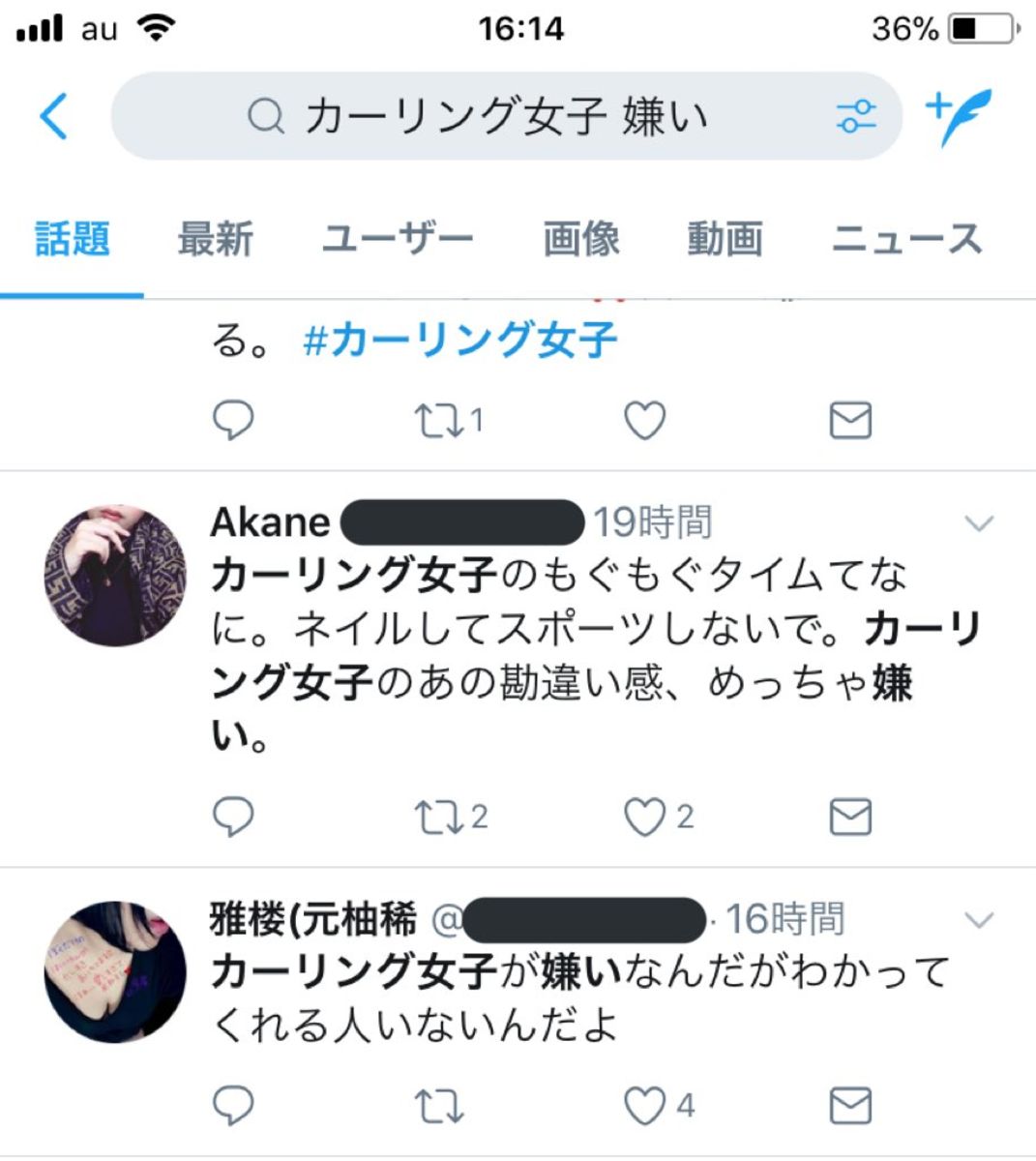 嫌いになるほど注目されてるんだ?カーリングみた事ないや。どーでもいい。強いの?興味ないのが大半じゃないの?