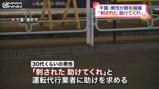 14日午後9時半ごろ、千葉県の浦安駅近くで運転代行業者が停車していたところ、30代くらいの男性が「刺された、助けてくれ」と助けを求めた。男性は左側の肩甲骨の内側を刺され、肺を損傷。警察は傷害事件とみて捜査。
