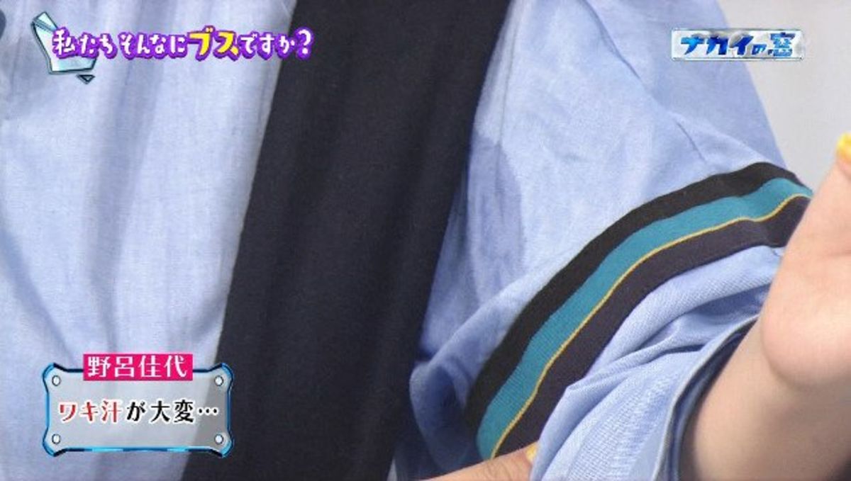 野呂も青い衣装で汗は目立つであろうことはわかっており、事前にワキ汗パッドをあてるなど準備はしていたが、パッドと実際の脇の場所がずれていたという。MCの中居正広から裏に行って拭いてきたほうがいい、と促されると、恥ずかしがりながら着替えに向かう事態に。 野呂のいなくなったスタジオでは、中居とバカリズムに対し「本当に意地が悪い。女子のワキ汗いじるなんて最低」と非難が浴びせられる。中居は「嫌なんだ。俺なんかワキ汗って言われてもわかんないから」と納めようとするが、「わかんねぇから結婚できねぇんだよ」という声が上がっていた。野呂佳代“ワキ汗”で悲劇、イジる中居に非難も