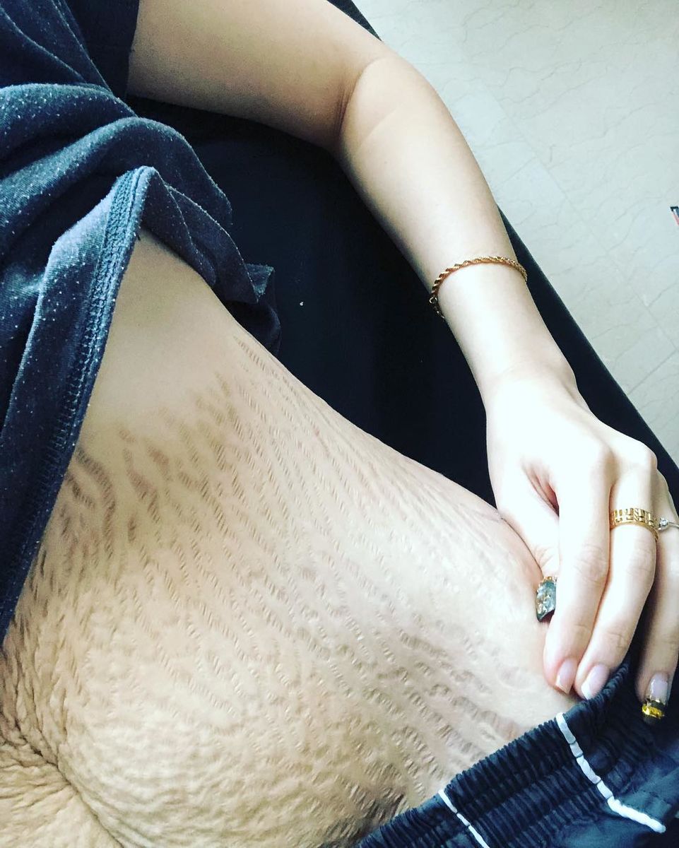【4人の命を育んできたお腹は…】 ドリーンさんの体には、胸のすぐ下から下腹部にかけておびただしい数の妊娠線がありました。 SNSにアップしている他の写真を見るかぎりでは、非常に華奢な体型のドリーンさん。そんな彼女が4人もの子供を身ごもったら、お腹がはちきれんばかりに膨らんでいたことは容易に想像がつきます。23歳のママが公開した “4つ子を出産後のお腹写真” が大きな話題に / おびただしい数の「妊娠線」が出産の壮絶さを物語っています