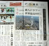 青森県の地方紙「デーリー東北」(八戸市)は1日付紙面で、八戸市で高さ888メートルの「新八戸タワー」が着工され、アラブ首長国連邦(UAE)ドバイにある超高層ビル…