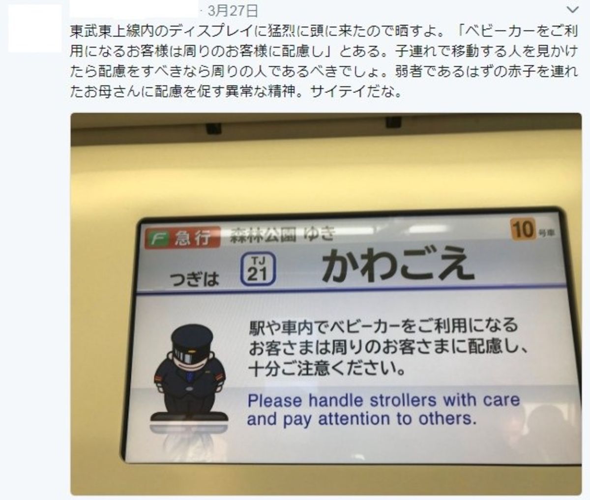 女さん、電車のベビーカー差別に物申す