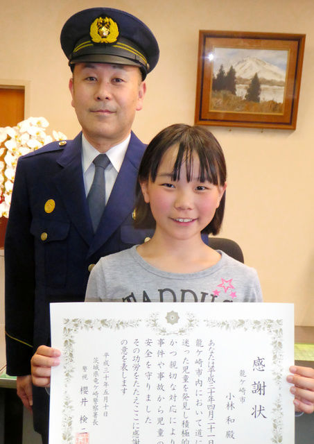 帰宅途中に迷子になった新入児童を見つけて保護した小学5年生に、茨城県警竜ケ崎署は10日、感謝状を贈った。受け取った龍ケ崎市立小5年の小林和(のどか)さん(11)は、「感謝状をもらってうれしい」と笑顔…