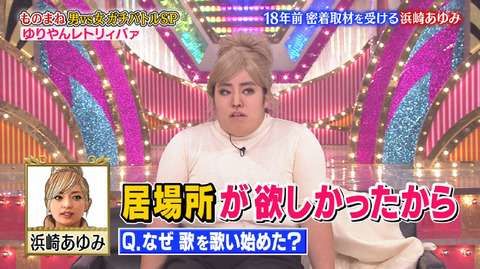 そんなゆりやんに、ネット上では「これは炎上しそう」「これはあゆに消される」「悪意しかない」といったコメントが続出。浜崎のファンの多くからも「完全にバカにしてて不快」「失礼すぎる」といった声があがり、怒りを買ってしまったようだ。 「ゆりやんが再現したのは、かつて放送されていたドキュメンタリー番組『スーパーテレビ情報最前線』(日本テレビ系)だと思われます。番組では当時人気絶頂にあった浜崎にスポットを当てた、わりとシリアスな内容でした。ファンにとっても印象的な番組だったこともあり、それを茶化すかのようなゆりやんのネタは、反感を買ったのでしょう」(テレビライター)