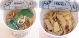 この商品は、ノンフライのポテトチップスに、別添のオリーブオイルをかけて食べるという新発想から生まれたもの。風味の良いオリーブオイルは調理に使うだけでなく、そのままかけるのも良いといわれていますが、ポテトチップスにかけて食べるとは! 考えてもみませんでした。