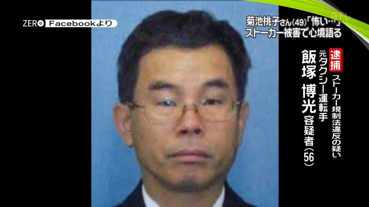 女優の菊池桃子さん(50)にストーカー行為を繰り返していた元タクシー運転手の飯塚博光容疑者(56)が24日(2018年6月)、再び逮捕された。最初に逮捕されてからわずか2か月あまり。19日、飯塚容疑者は菊地さん宅のインターホンを鳴らし、逮捕された。「行ってはいけないことは分かっていたが、どうしても会いたくて行ってしまった」と話しているという。