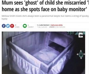 カナダに住む2児の女性は、2016年9月に3人目の赤ちゃんを流産した。以来、女性宅では勝手に音楽が鳴るなどの奇妙な現象が相次いだとのこと。寝室のカメラの映像には、亡くなった赤ちゃんと思われる顔が写っていたそう