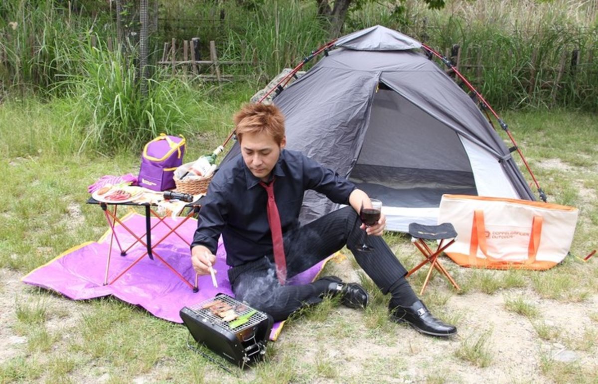 革靴でキャンプかよ!