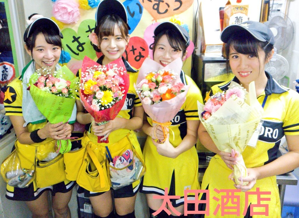 昨シーズンでビール売り子卒業の まりなちゃん(左から2番目)