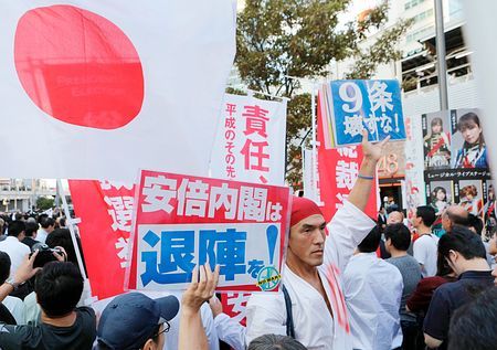 19日、安倍首相は東京・秋葉原で自民党総裁選を締めくくる街頭演説をした。聴衆の一部から「辞めろ」コールが沸き起こり、会場は騒然とした雰囲気に。「安倍内閣は退陣を」などと書かれたプラカードも林立していた