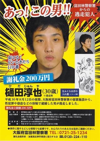 樋田の知人によると「大阪におらんのやったら、東京とか、関東の方に行ったかもしれん。今年5月(2018年)の逮捕前に、東京で先輩の手伝いをしていると話していた」という。 手伝いとは、おそらくは、家電の冷蔵庫など窃盗し、売りさばいていたことらしいという。「土地勘がなくても、知っている人間を頼って行ったのではないか」と話す。 元兵庫県警刑事の飛松五男氏は東京へ逃げた可能性について、「大阪から東京まで高速で5時間で行ける。助手席や後ろに座っていたら、チェックされる可能性は低い。捜査員も東京に向かって捜査しているという情報もある」と指摘する。東京でも目撃情報 大阪の逃走男、悪友を頼り関東に出没? - ライブドアニュース