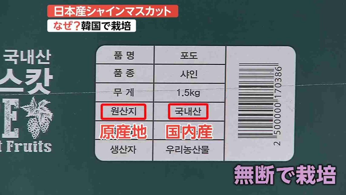 金泉市のキム・ジェギョン農畜産課長は「日本で(シャインマスカットが)開発された当時、品種登録を韓国でしなかったのが、日本の残念なところかもしれない」とコメント。韓国でシャインマスカットを栽培することは違法ではないという。 そのため、金泉市では「シャインマスカット栽培技術マニュアル」を制作し、シャインマスカットの栽培をバックアップしているのだ。 なぜ、韓国で日本の品種であるシャインマスカットを栽培しても違法ではないのだろうか。 実は、シャインマスカットを開発した日本の農研機構は、2006年に日本で品種登録を実施。 その際、輸出を想定していなかったため、海外での品種登録を行わなかったのだという。 海外での果物の品種登録は国内での登録から6年以内に行うことが国際条約で定められている。 そのため、すでに申請期限を過ぎてしまった今、開発コストを全く負担していないにも関わらず、韓国ではシャインマスカットが“作り放題”となってしまっているのだ。韓国で日本の高級マスカット“無断栽培”…なぜ合法?「日本ブランド」を守れ! - FNN.jpプライムオンライン