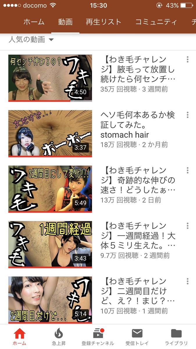 女ユーチューバーさんムダ毛生やして再生数稼ぎ