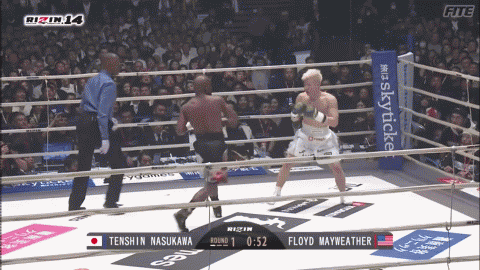 <RIZIN14>◇12月31日◇さいたまスーパーアリーナ ボクシングの元世界5階級制覇王者フロイド・メイウェザー(41=米国)が本気になった。ボクシング・エキシビションマッチで、キックボクシング界の“神童”那須川天心(20)から3度のダウンを奪い、1回2分19秒、TKO勝ちを収めた。那須川のパンチが左頬をかすめた瞬間、本気モードに突入。33連勝の那須川を子ども扱いし、格の違いを見せつけた。 試合開始のゴングが鳴ると、メイウェザーは笑いながら戦い始めた。最初の打ち合いで、那須川の左ストレートが頬をかすめると、顔つきが変わった。右ボディーの後、右フックを那須川の側頭部にたたきこみ、1度目のダウン。さらに、右アッパーで2回目。そして左フックでとどめをさした。 日本マット界に、世界トップの大物が上がり、日本人選手と対戦するのは、ムハマド・アリ対アントニオ猪木戦以来の“歴史的事件”だった。エキシビションながら、容赦なく襲いかかり15発で那須川を沈めた。那須川のパンチも当たったが、次元が違った。 試合後はまた、へらへら笑いに戻った。予定になかった会見を開き、上機嫌で15分間話し続けた。「那須川は若いライオンだ。成長する余地はたくさんある。この試合は記録には残らない。これからも頑張ってほしい」と惨敗した相手を持ち上げた。 世紀の一戦とも言われた戦いは、公式戦でないにもかかわらず、ルール問題で試合当日までもめた。最後は、RIZIN側の説得を受け入れ、メイウェザーが「ハンディ」として10オンス、那須川が8オンスのグローブを着けることを承諾。今回の来日で、初めてメイウェザーが折れた。それでも会場に遅れてくると、いったん巻いた那須川のバンデージをもう1度巻き直させるなど、ぎりぎりまでやりたい放題だった。 那須川も、試合が決まるとボクシングの本格トレーニングのため渡米。メイウェザーと同じラスベガスの元3階級制覇王者ホルヘ・リナレスのジムで特訓した。それでも子どもの頃から那須川を見ているテッペンジムの那須川弘幸会長は「本当は怖くてたまらないんですよ。メイウェザーが本気になったら、天心が壊されるかもしれないじゃないですか」と、試合前に苦しい胸の内を明かした。その心配が当たった形だ。 メイウェザーは試合の後の会見を終えると、米ラスベガスへ帰るために羽田空港へ直行した。嵐のようにRIZINを席巻したメイウェザーは、そのニックネーム「マネー」の言葉通り、わずか50時間あまりで約10億円のファイトマネーを稼ぎ出した。にやにやメイウェザー、天心子供扱いで10億円荒稼ぎ(日刊スポーツ) - Yahoo!ニュース