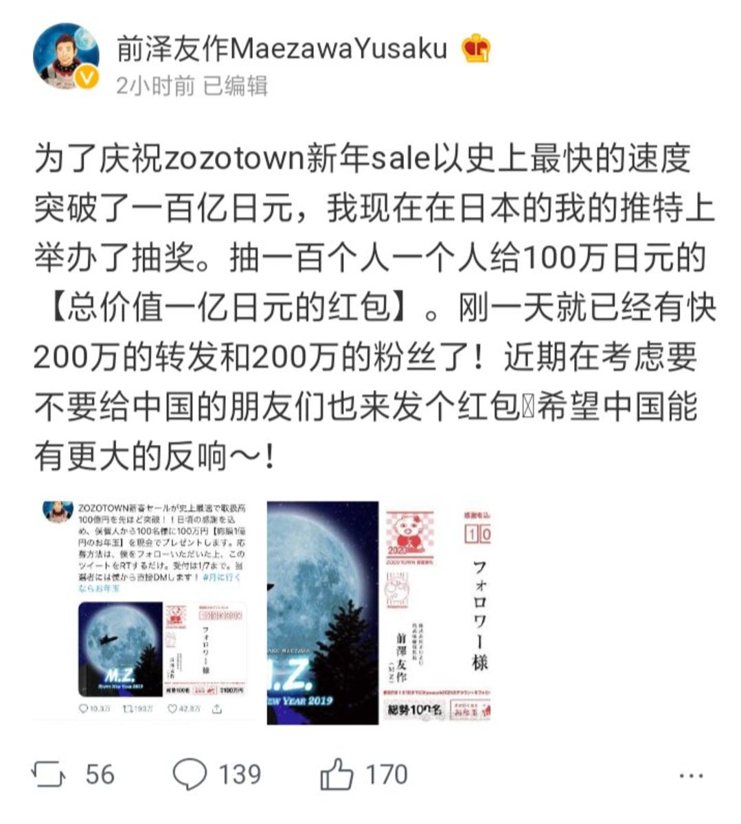 “NHK朝ニュースの経済コーナーで「ZOZO前澤氏のビッグなお年玉」…「100万円×100人」プレゼントを発表した前澤氏のツイートが300万RT超の国内新記録となったことを伝えて「さすが前澤社長、話題づくりのスケールも違いますね」とまとめる。”