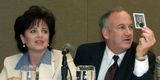 2000年5月24日、米アトランタでの記者会見で、ジョンベネちゃんの写真を示す両親(ロイター=共同) 英大衆紙デーリー・メール(電子版)は10日、米コロラド州ボールダーで1996年12月、美少女コンテストの常連だったジョンベネ・ラムジちゃん...