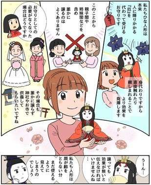 マンガでは、「母親のひな人形を娘に譲ることは母親の厄を娘に引き継がせる」として、一人に一飾りずつ持つよう助言しているが、ネット上では「流石にちょっと無理筋では...」と反発も寄せられている。協会に真意を聞くと...。 日本人形協会の倉片順司副会長は28日、J-CASTニュースの取材に、「ひな人形を娘に譲るのはNGというほど強くはない。飾ってはダメだと言いたいわけではなく、飾ることの意味を知ってほしかった。ストレートに伝えると(メディアに)取り上げてもらえないためちょっと強めに表現してしまった」と話す。全文表示 | 「ひな人形、おさがりNG」って本当? 業界団体の解説に賛否両論...真意を聞いた : J-CASTニュース