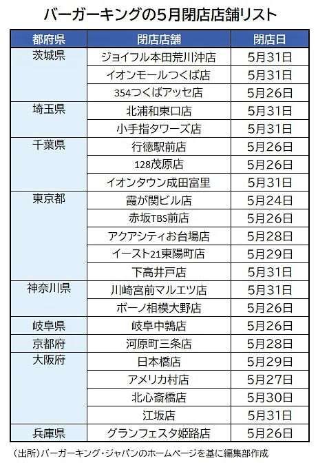 あの「#バーガーキング」が大量閉店します。その数、実に国内店舗の2割強。いったいどこの店舗が閉鎖になるのでしょうか?