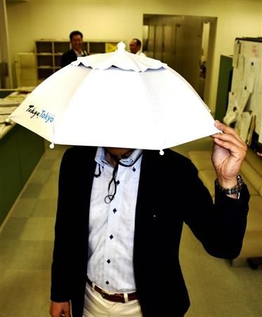 24日に発表された東京五輪向けのかぶる傘の試作品が、反響を呼んでいる。暑さ対策にもなるとしているが、「観客がかぶったら邪魔では」との批判も。東京都の担当者は、観客でなくボランティアへの配布を検討していると話した
