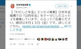 折しも、金融庁の金融審議会が「人生100年時代」を見据えた報告書を公表し、年金だけでは老後の暮らしが足りず、資産形成が必要などと示したばかり。ネット上では、「『わたしの年金は?』ってエッセイ書きたいわ」など、さまざまな意見が飛び交っていた。 機構公式サイトの該当ページでは、「公的年金の大切さや意義を、皆さまと一緒に考えていきたいと思います」と応募を呼び掛け、作品については「公的年金の大切さ、社会保障としての公的年金の意義など、公的年金に関するエピソードを盛り込んだ内容であれば、なんでも結構です」とうたっている。全文表示 | 「わたしと年金」エッセイ募集が物議 金融庁報告の直後、タイミング悪く... : J-CASTニュース
