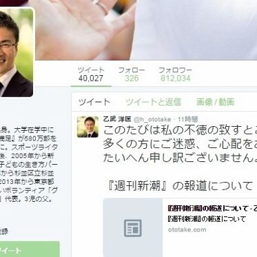 「乙武洋匡氏のtwitter」より 今年の参院選の自民党有力候補者のひとりと目される乙武洋匡氏に、衝撃のスキャンダルが浮上した――。 乙武氏といえば、先天性四…