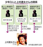 川崎市川崎区の多摩川河川敷で2015年2月、中学1年の上村遼太さん=当時(13)=が殺害された事件を巡り、上村さんの遺族が加害者の元少年3人とそれぞれの親計8人に損害賠償を求めた訴訟で、計約550...