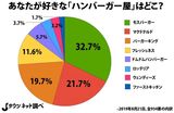1位、2位で過半数を占める 選択肢は「マクドナルド」「モスバーガー」「ロッテリア」「バーガーキング」「フレッシュネス」「ウェンディーズ」「ファーストキッチン」「ドムドムハンバーガー」の7店。 一番人気だったのは「モスバーガー」で32.7%(305票)。圧倒的店舗数を誇るマクドナルドを抜く形となった。続いて「マクドナルド」は21.7%(203票)、「バーガーキング」が19.7%(184票)、「フレッシュネス」が11.6%(108)の順になっている。 モスバーガーとマクドナルドで過半数を占めており、2強といったところだ。 驚いたことに、バーガーキングは地方での出店が少ないにも関わらず、3位という健闘ぶり。19.7%と2位のマクドナルドと僅差だ。東京のアンケート結果を見ると、603人中152人(25.2%)がバーガーキングと回答し、マクドナルドの19.1%を上回る結果となっている。 続いて都道府県別の人気チェーン店を見てみよう。マックは2位! 日本全国「好きなハンバーガー屋」ランキング、堂々1位に輝いたのは... - Jタウン研究所 - Jタウンネット