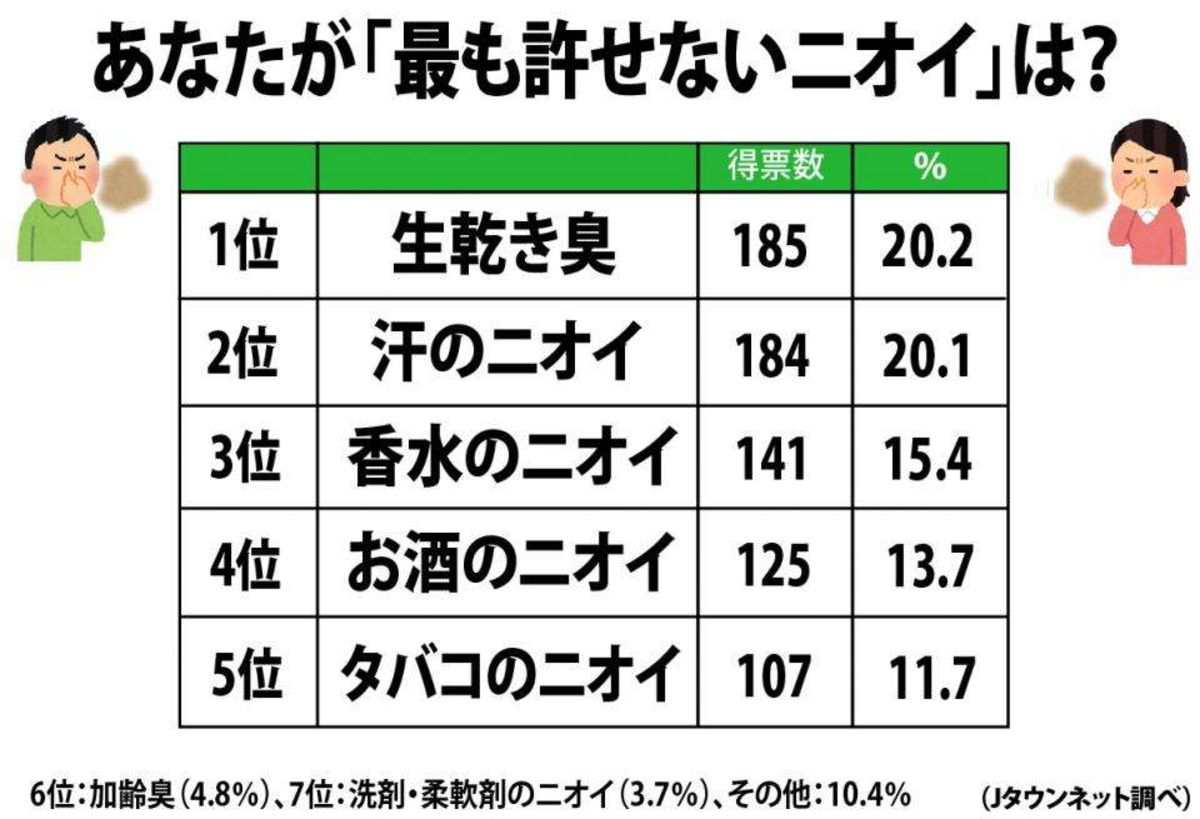 発表!「最も許せないニオイ」ランキング 香水、タバコ、生乾き...ワースト不快臭はどれ? - Jタウン研究所 - Jタウンネット