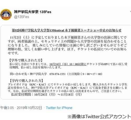 木下優樹菜、神戸学院大学の学園祭出演が中止に木下優樹菜、神戸学院大学の学園祭出演が中止にのニュースを紹介