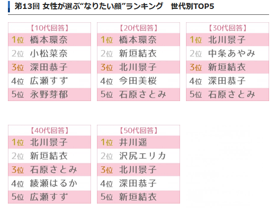 第13回 女性が選ぶ“なりたい顔”ランキング