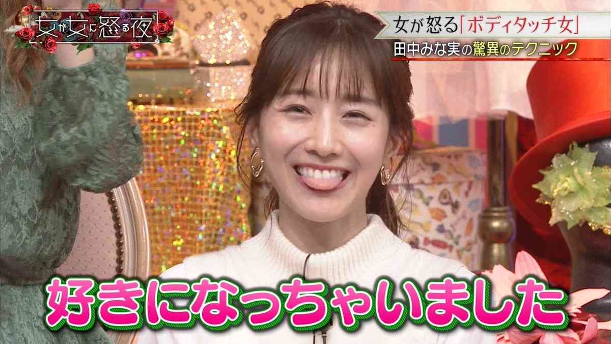 好きなタイプを聞かれたときの返答では「何て言ったら好きになってくれるかなぁ」と答えるそうで、「あくまでも気になっている人に聞かれた場合にこう答える」とした上で、「独り言ぽく言っちゃっているのかな? 自分は言っているつもりはないんだけど、言っちゃっているのかも!」と話し、スタジオの爆笑と怒りの声を浴びた。一方でMCの上田晋也(49)とゲストの清原翔(26)は、田中のトーク力やボディータッチにメロメロになっていた。田中みな実、「イイ女」テクニック披露で賛否の声 MC&ゲストは“完オチ”