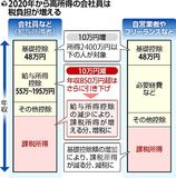 働き方の多様化に対応するため、2020年1月から所得税が見直される。年収が850万円を超える会社員や公務員などが増税となり、フリーランスや自営業者の大半が減税になる。収入が多い年金受給者も増税になる。 所得税は、年収