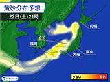 ここ最近の1週間では、中国大陸で黄砂が観測されていて、22日(土)には日本列島上空にも飛んでくる可能性があります。 22日(土)夜から23日(日)早朝は注意 22日(土)は低気圧が日本付近を通過した後、大陸からの寒気が流れ込んできます。この気団に乗る形で大陸からの黄砂が日本上空に達する予想です。 ウェザーニュースの22日(土)21時の予想によると、北日本や西日本で比較的多くなる予想です。 今回は黄砂が飛来する時間帯が夜の暗い時間が中心となるため、空が黄色く見えるといったことはなさそうですが、23日(日)朝にかけては黄砂が地上に達する可能性もあります。 花粉症の方は症状悪化に注意 黄砂は低濃度でもアレルギー症状が出やすくなったり、気管支など呼吸器系に影響が出るという報告もあります。 また、この時期は花粉症の方は症状が悪化することもあるため注意が必要です。 黄砂で汚れる可能性があるため、洗車を控えたり、洗濯物を部屋干しにするなどの対策を行うと良さそうです。黄砂が大陸から飛来 22日(土)夜は要注意