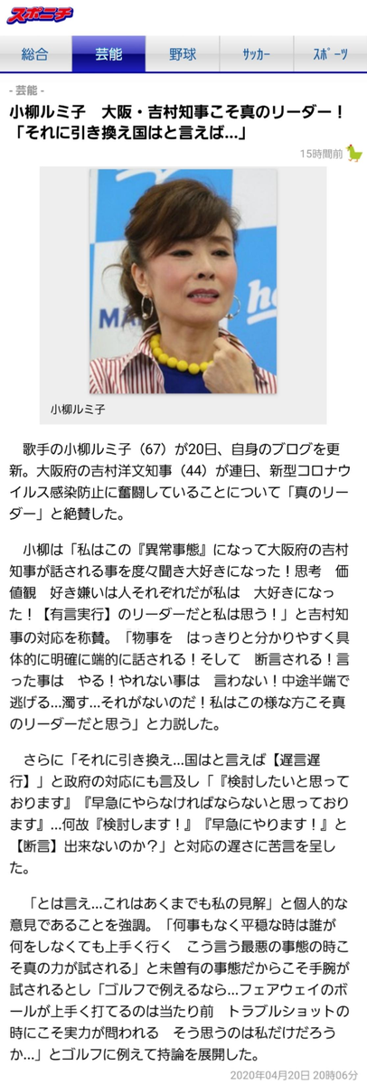 「官僚の言うことをやるだけなら政治家は要らない、まさにその通り!」猪瀬直樹氏が大阪府の吉村知事の意見に全面賛同 2020年4月28日 15時9分--- 本田圭佑×吉村大阪府知事、「良い流れ!」「吉村さん、寝てください」のやり取り反響 ---