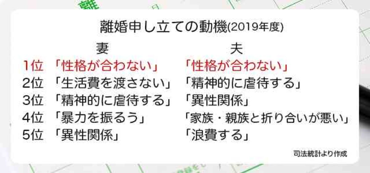 なお、家庭裁判所に申し立てをした件数は、合計6万542件。 「妻」による申し立てが4万4,040件、「夫」による申し立てが1万6,502件だったそうです妻と夫でこんなに違う「離婚したい理由」司法統計で分かった、それぞれの動機“トップ5”は?